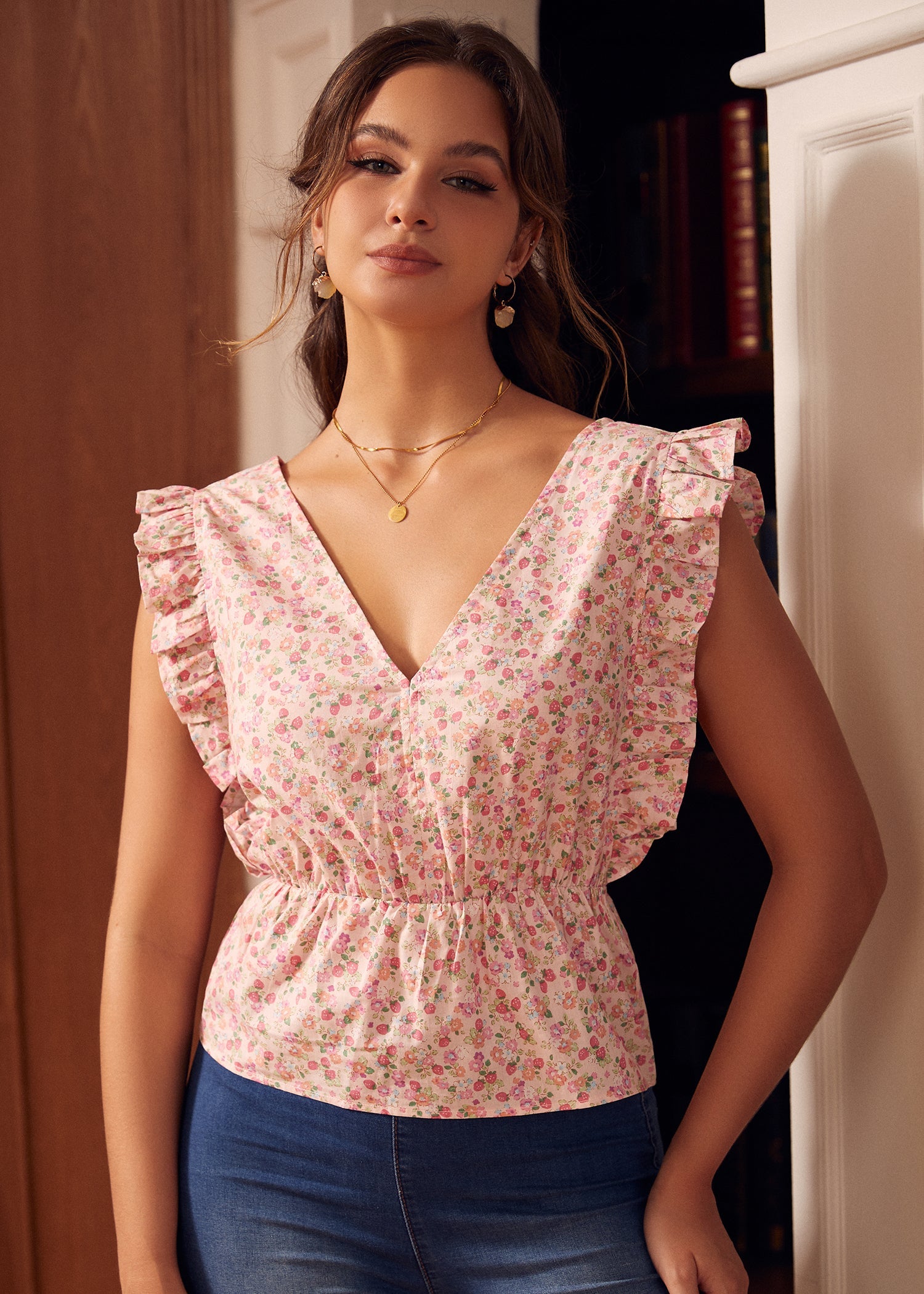 Dive into a basket of freshness with this strawberry-print sleeveless blouse, flaunting playful ruffle shoulders and a charming v-neck, all from our ModCloth namesake label. Crafted from a breezy fabric that dances around your frame, it promises comfort on sunny days and warm evenings alike. Perfect for picnics in the park or casual coffee dates, this top pairs wonderfully with high-waisted shorts or a swishy skirt, making every moment feel a tad sweeter.