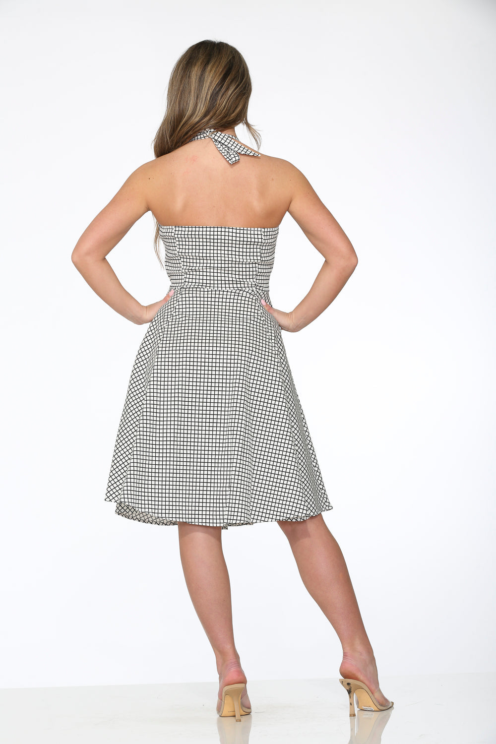 White & Black Checkmate Halter Swing Dress